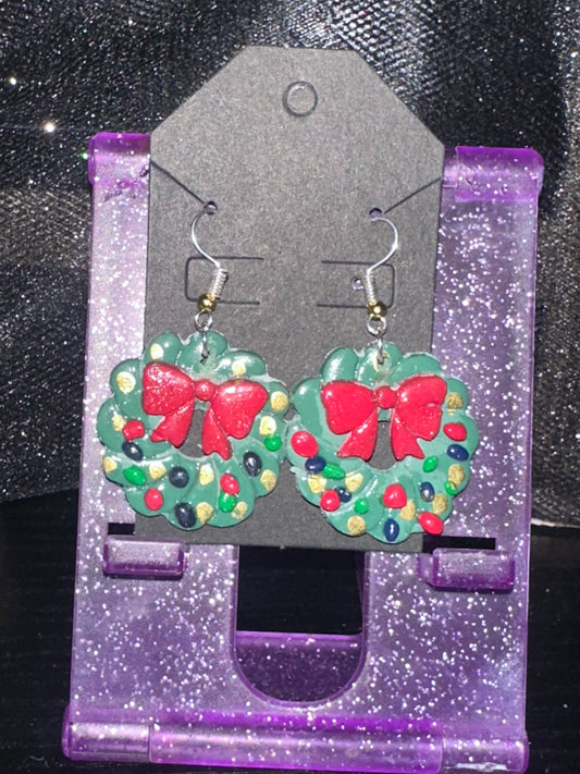 Handmade wreath clay earrings